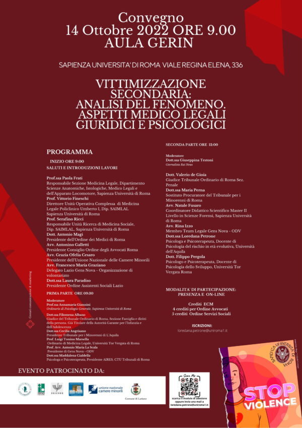 VITTIMIZZAZIONE SECONDARIA: ANALISI DEL FENOMENO – 14 ottobre 2022 – ROMA (LAZIO) GensNova2022-11-12T10:04:28+01:0012 Ottobre 2022|Eventi 2022| Continua a leggere