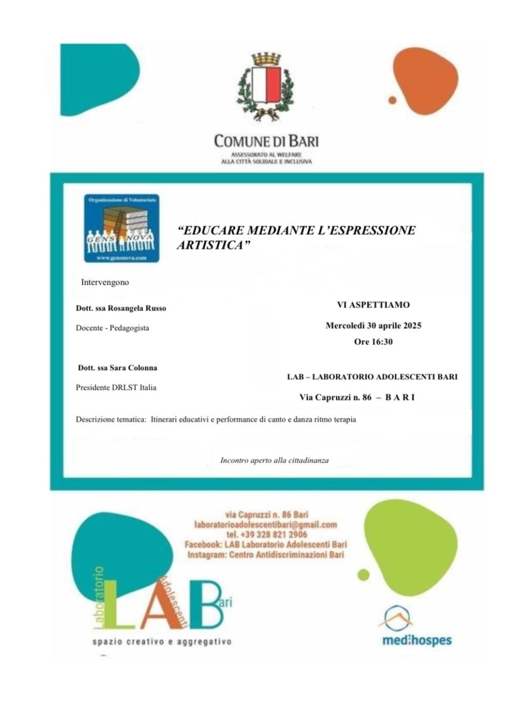 GENS NOVA sul tema “Educare mediante l’Espressione Artistica” – 30 Aprile 2025 – Bari (PUGLIA) Admin2025-05-04T11:19:19+02:001 Maggio 2025|Eventi 2025| Continua a leggere