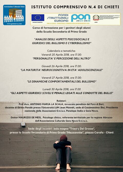 Sede degli incontri: aula magna “Trieste Del Grasso”, presso la Scuola Secondaria di Primo Grado “Mezzanotte”, piazza Carafa – Chieti