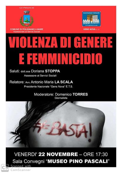 Violenza di genere e femminicidio – 22 novembre 2019 – Polignano a Mare – PUGLIA Admin2022-05-13T19:24:40+02:0022 Novembre 2019|Eventi, Eventi 2019| Condividi questo articolo, scegli la tua piattaforma! FacebookXLinkedInEmail
