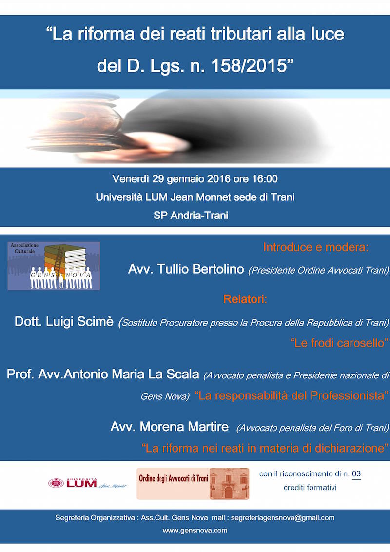 Avvocato penalista del Foro di Bari | Presidente Nazionale Associazione culturale Gens Nova