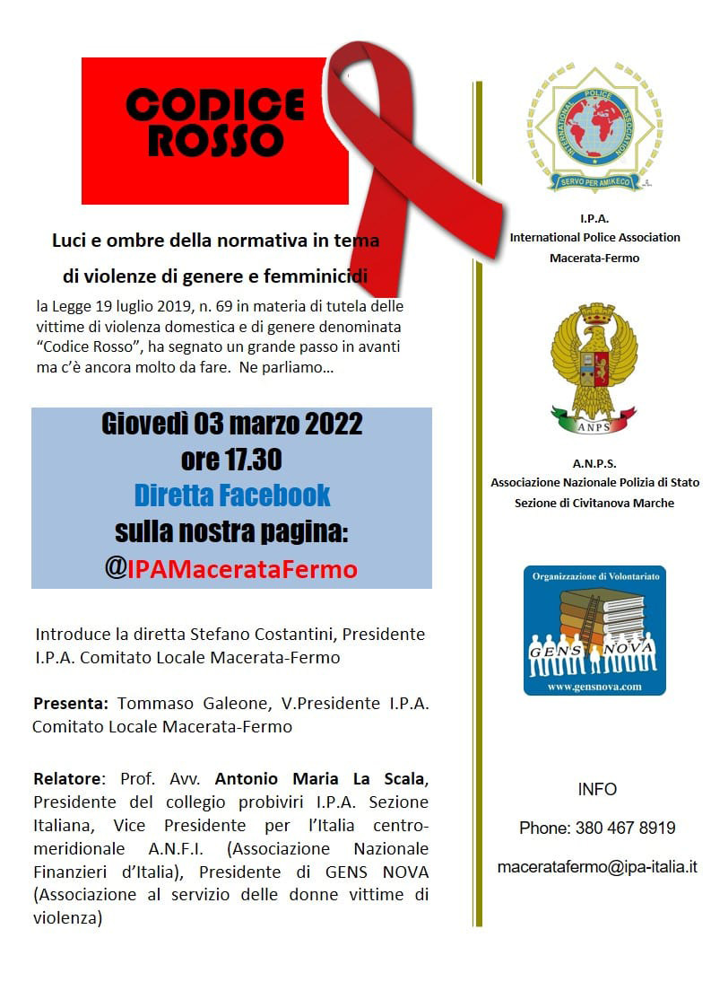 Codice Rosso – 3 marzo 2022 Admin2022-06-28T19:08:59+02:003 Marzo 2022|Eventi, Eventi 2022| Condividi questo articolo, scegli la tua piattaforma! FacebookXLinkedInEmail