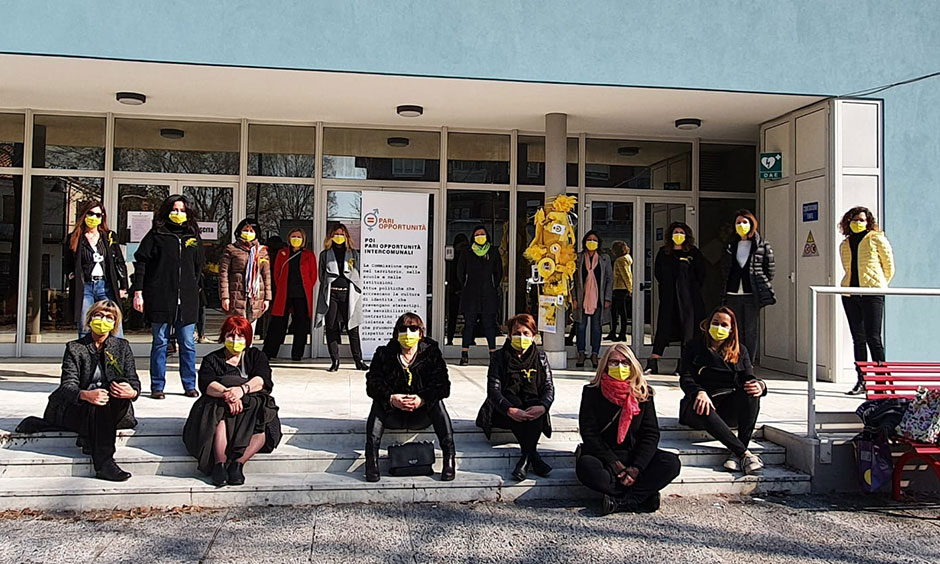 Domenica 07.03.21i Comuni della C.P.O.I Comm. Intercomunale Pari Opportunità che comprende i comuni di: Casale sul Sile, Casier, Marcon, Mogliano Veneto, Preganziol e Zero Branco, si sono tinti di giallo in ricordo della Festa delle Donne.