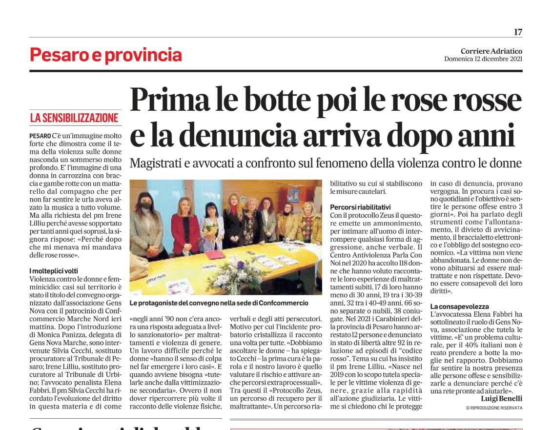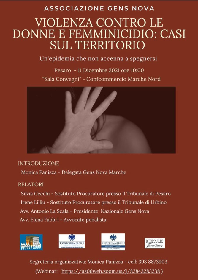 Relatori: Sostituto Procuratore di Urbino dott.ssa Irene Lilliu, sostituto procuratore di Pesaro dott.ssa Silvia Cecchi e l’Avv.to Elena Fabbri di Gens Nova Marche.