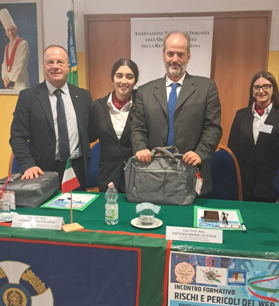 Il nostro consigliere e avv. Antonio La Scala è intervento sul tema dei rischi del web in un incontro tenuto dall’Associazione ANCRI con i ragazzi dell’istituto alberghiero “Consoli” di Castellana. L’incontro è stato fortemente voluto dall’amico Dott. Leo Ivone sempre sensibile a simili tematiche.
